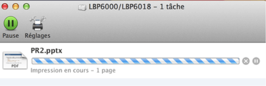 J'ai installé la dernière version du pilote de l'imprimante canon LBP6000B que j'ai trouvé sur le site officiel de Canon (Mac_CAPT_V390_uk_EN.dmg). le Mac reconnait l'imprimante et le driver est bien installé mais quand je lance une impression, ça rame un bon moment avant de s'arrêter.
