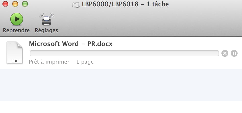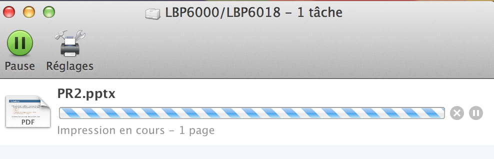 Quand je lance une impression, ça rame comme suit :