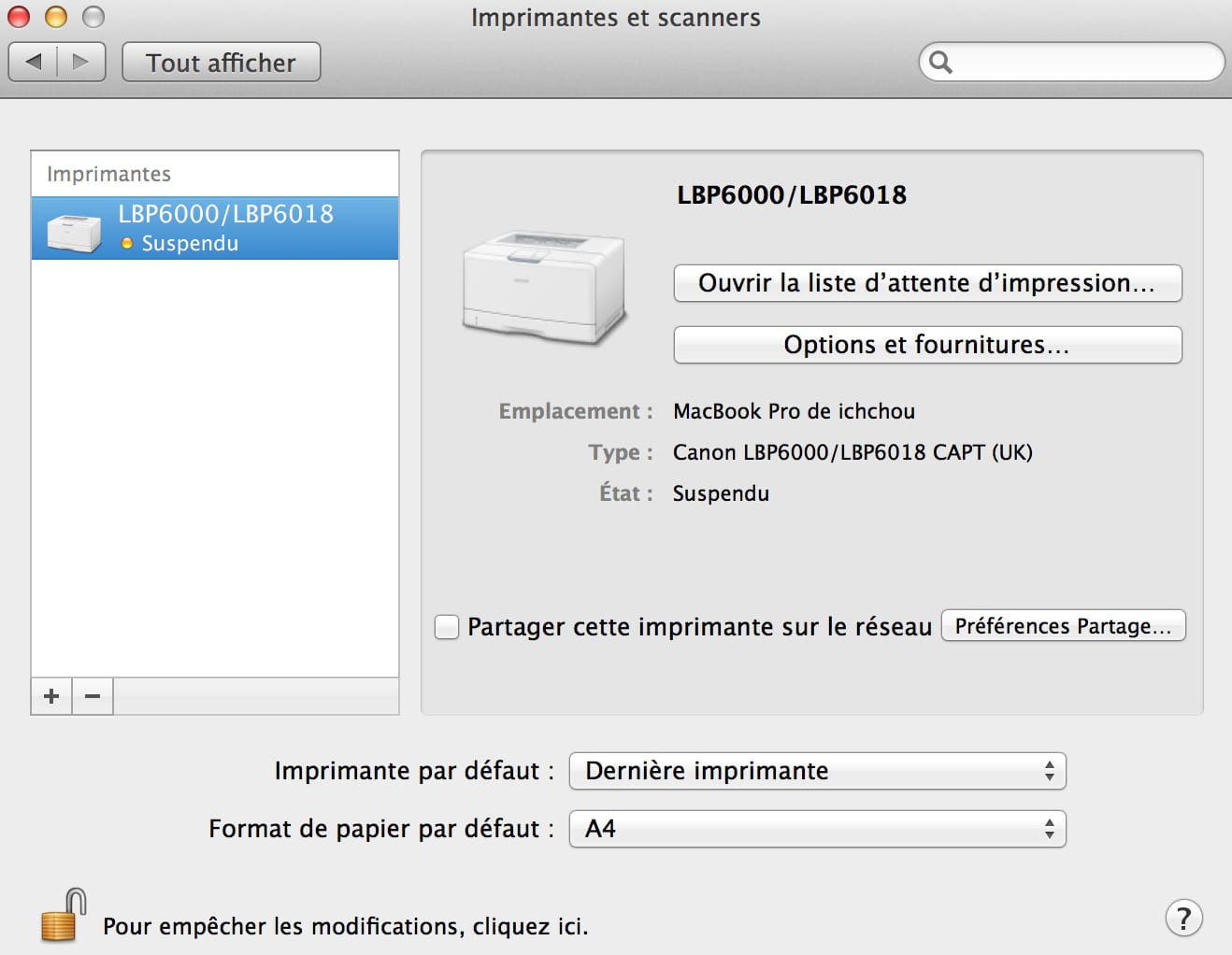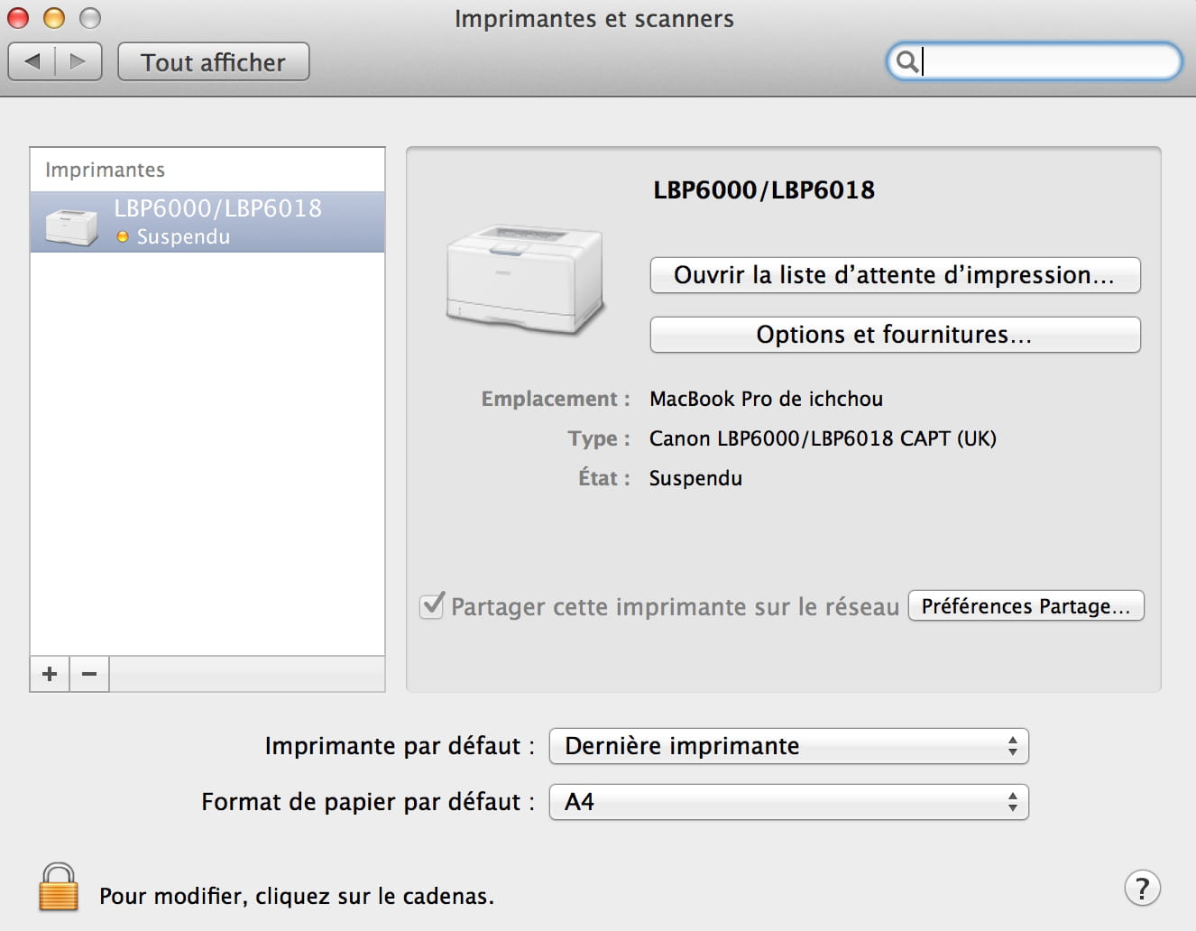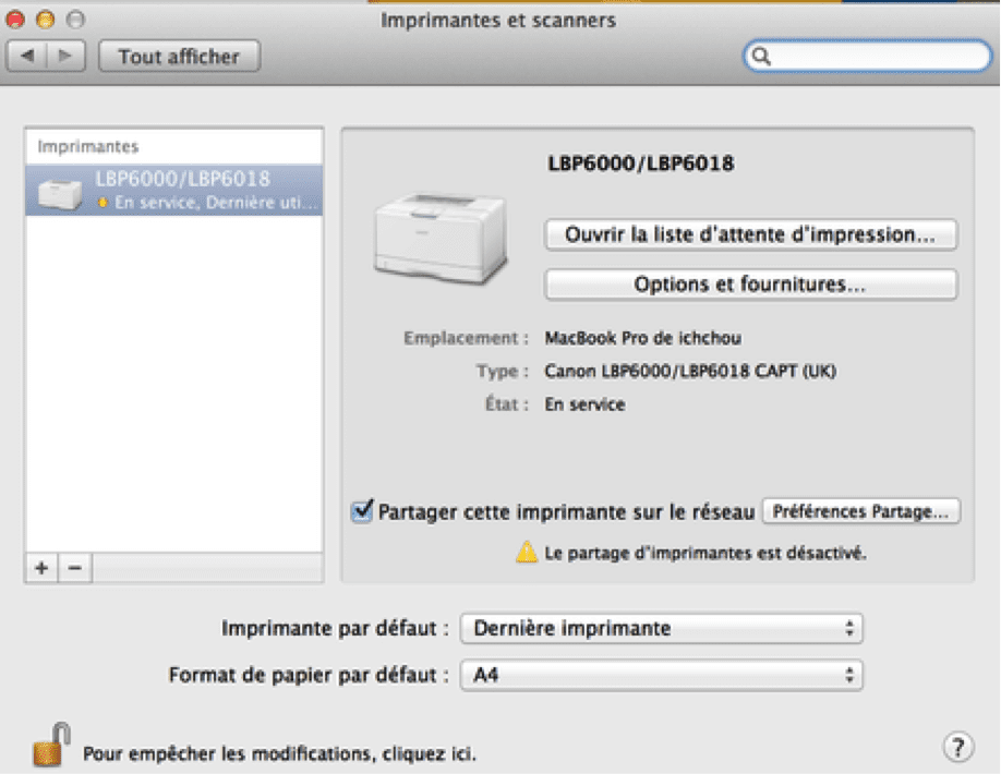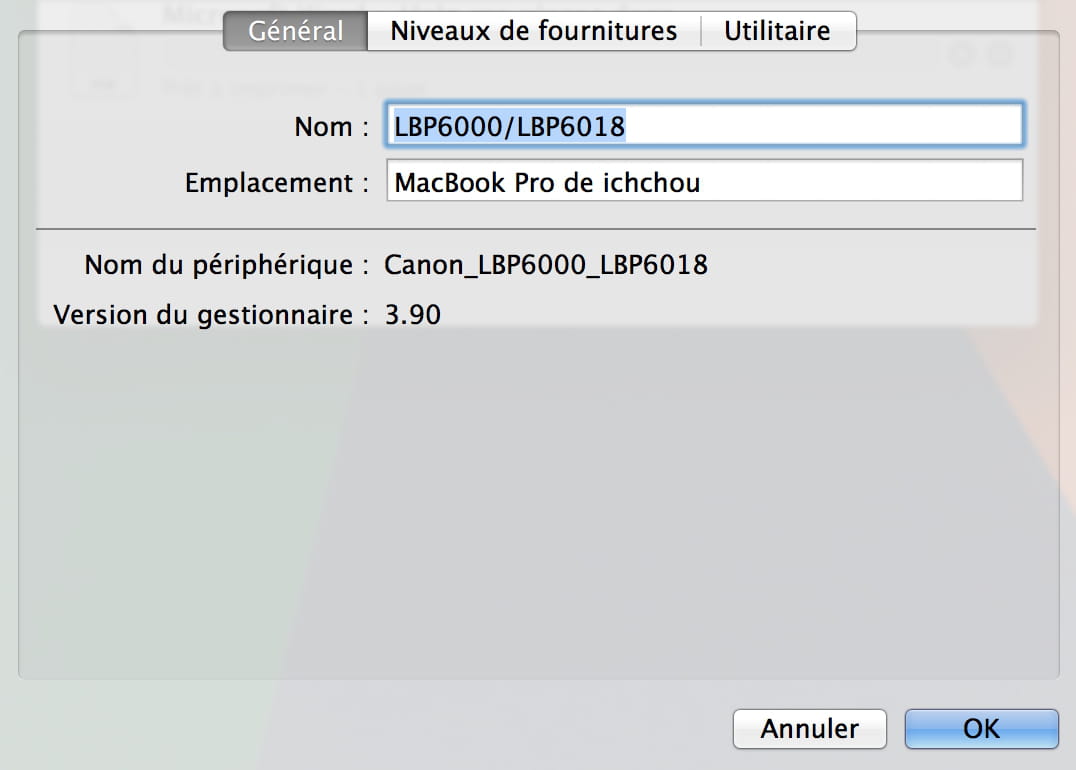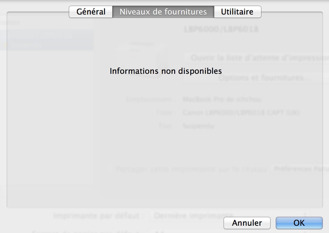 - Canon LBP6000B n'imprime pas sous Mac OSX Mt Lion 10.8.5