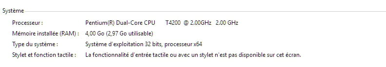 Bonsoir, en fait ce sont mes GO de Ram qui ne s'affichent pas car dans les paramètres système il marque qu'il y a 6 GO installées en ram et que je ne peux utiliser que 1 seul GO alors que l'ordinateur est sur windows 10 depuis cette nuit car j'ai fait l'installation.
