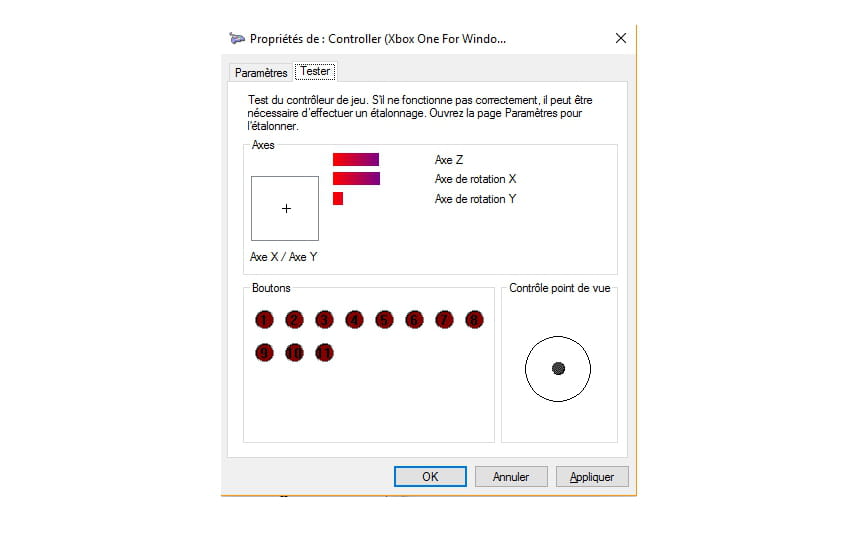 Je jouais à un jeu sur PC et je trouvais que les déplacement de la caméra (joystick droit) sur l'axe X était sensiblement plus rapide d'un coté que de l'autre, je décide alors je faire un étalonnage via Windows je retourne dans mon jeu (où rien n'a changé) puis quelque minute après je mon joystick droit devient très peux sensible,mais sur l'axe Y maintenant. En revenant sur le l'outil de calibration Windows je remarque que le fameux axe Y,est en position neutre sur ma manette,mais n'est plus centré sur la partie logicielle.