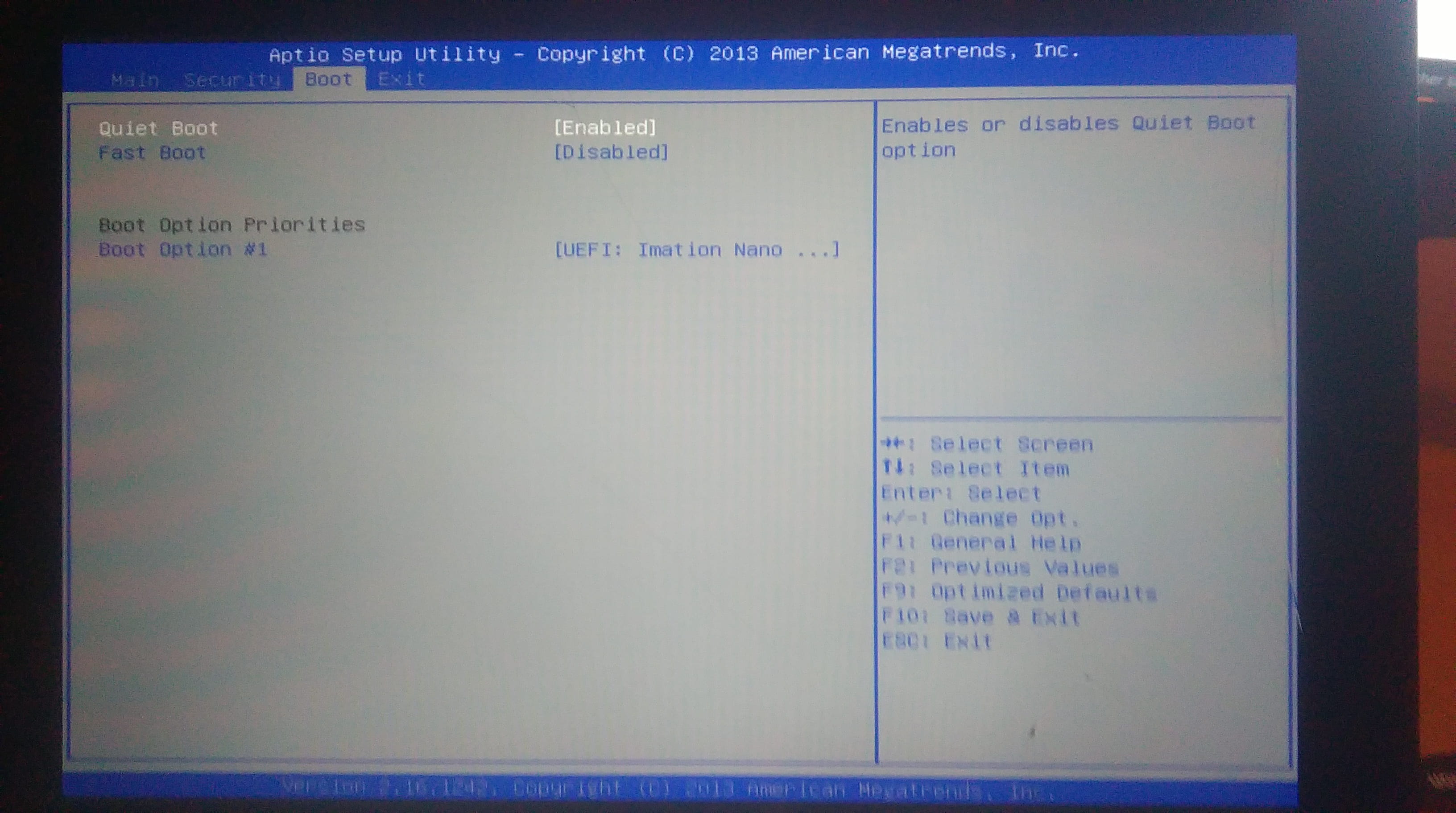 Je désactive "secure boot" et contrôle que ma clé est bien visible (ci joint la photo)