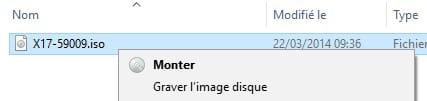 Pour l'image iso il n'y a pas marqué "monter" sur le clique droit.