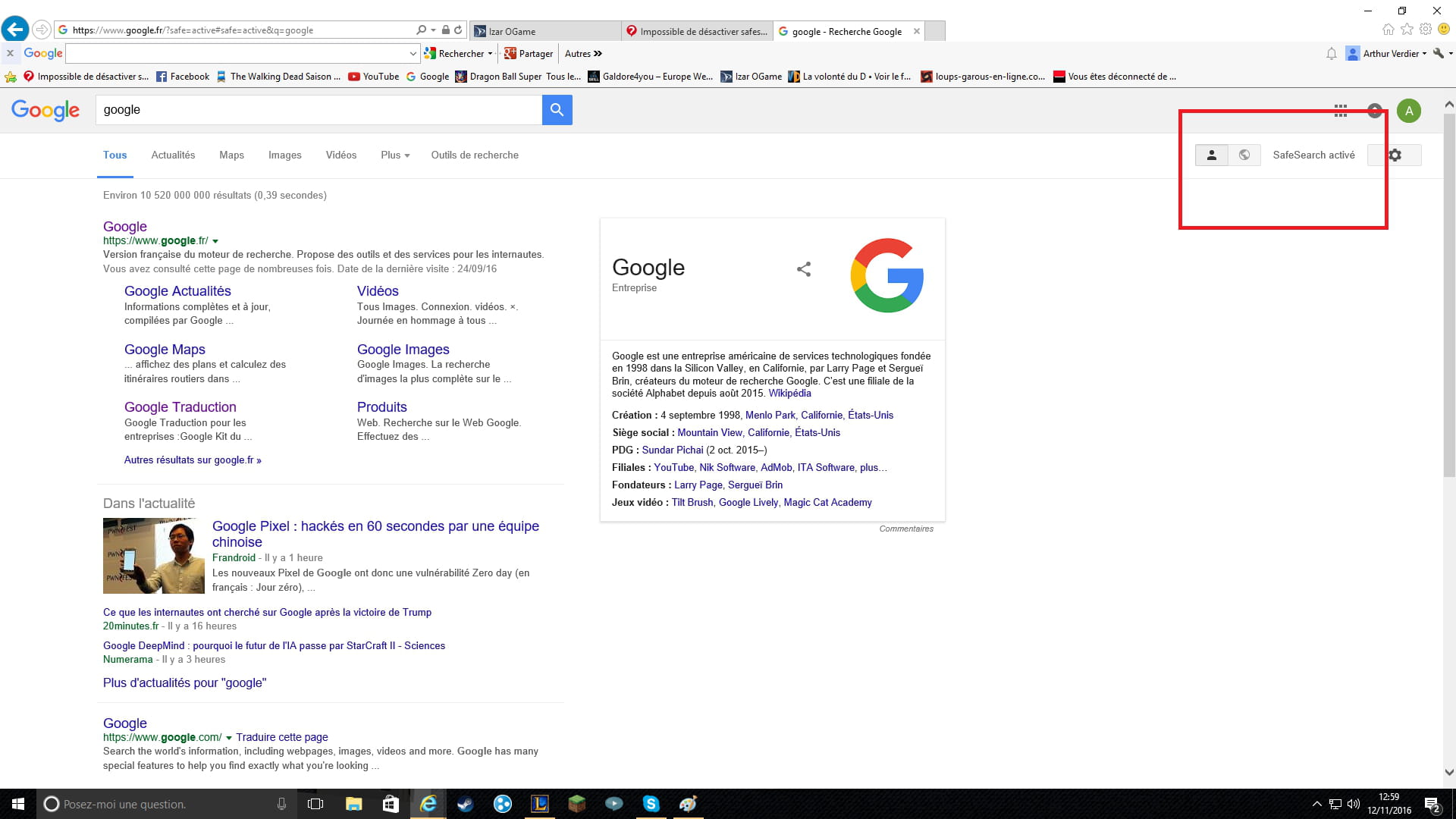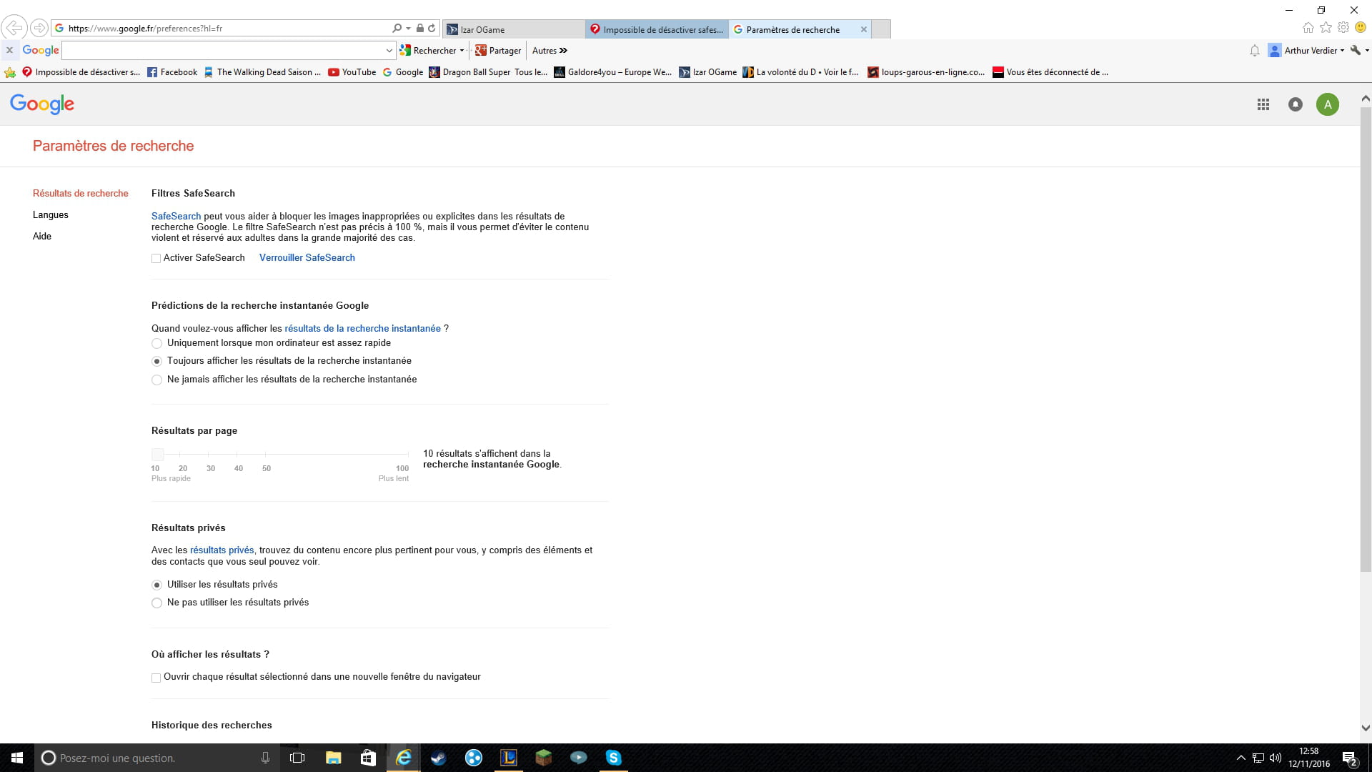 Impossible de désactiver safesearsh sur mon nouveau pc