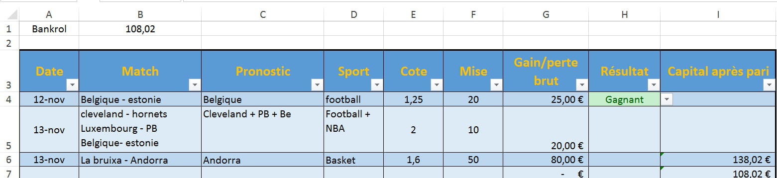 j'ai un tableau de suivi de mes paris sportifs et j'aimerai modifier le capital final en fonction d'une liste déroulante du résultat du match (gagnant, perdant, annulé) et que le capital augmente ou diminue en fonction de ma mise jouée et du choix de la liste déroulante