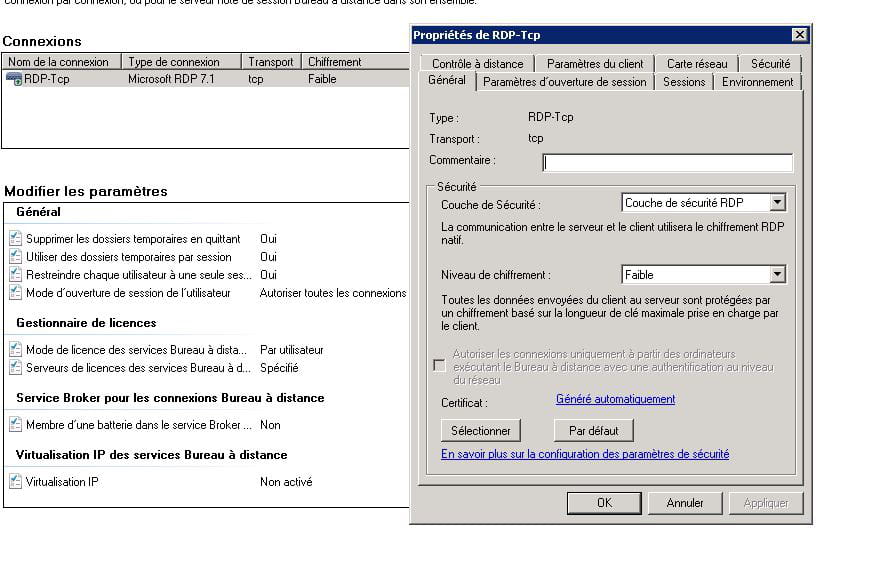 Sur le cluster 2 les serveurs TSE (Windows serveur 2008 R2, Microsoft RDP 7.1) récupèrent leurs licences sur eux même.