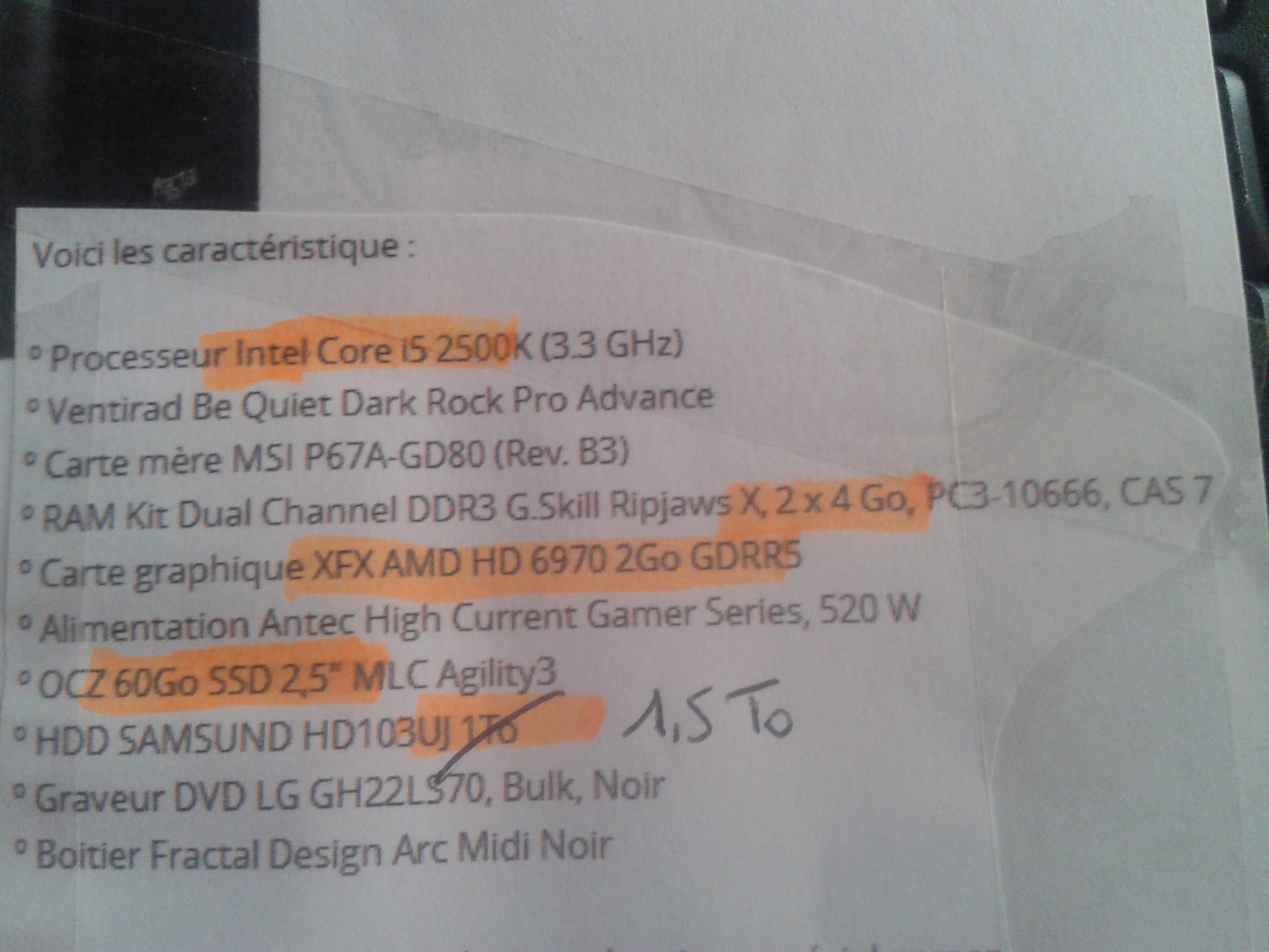 Je vous mets quelques photos, une photo avec les caractéristiques de l'ordi, une photo avec l'écran que j'obtiens au démarrage et une photo de la restauration échoué avec le code erreur (j'en ai tenté plusieurs...).