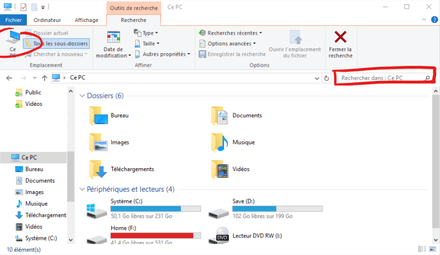 Comment retrouver des fichiers ou des dossiers sous Windows 10, ce ne sont pas ds fichiers ou des dossiers écrasés, mais je ne sais plus où je les ai mis