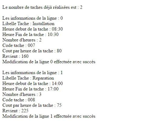 echo "<br>Libelle Tache".$xt." : ".$tchToUpd."<br>";