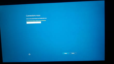 bonjour jais recus mon pc gamer ce matin sans os (jai eu un dvd pour les drivers mais mon pc a pas de lecteur donc jai as pu installerles driver) jais donc télécharger l'iso de windows 10 je lai mi dans la cle usb pour l'installer sur mon pc dsns les paramètre du bios et quand jarrive a l'installation Windows je mais tout les paramètre sa redémarre et sa me demande ma connexion wifi je mais numericable et quand jveu metre ma souri sur l'espace pour ecrire la cle de securiter ya pas le pointeur et je ne peut pas ignorer cette étape aidée moi svp