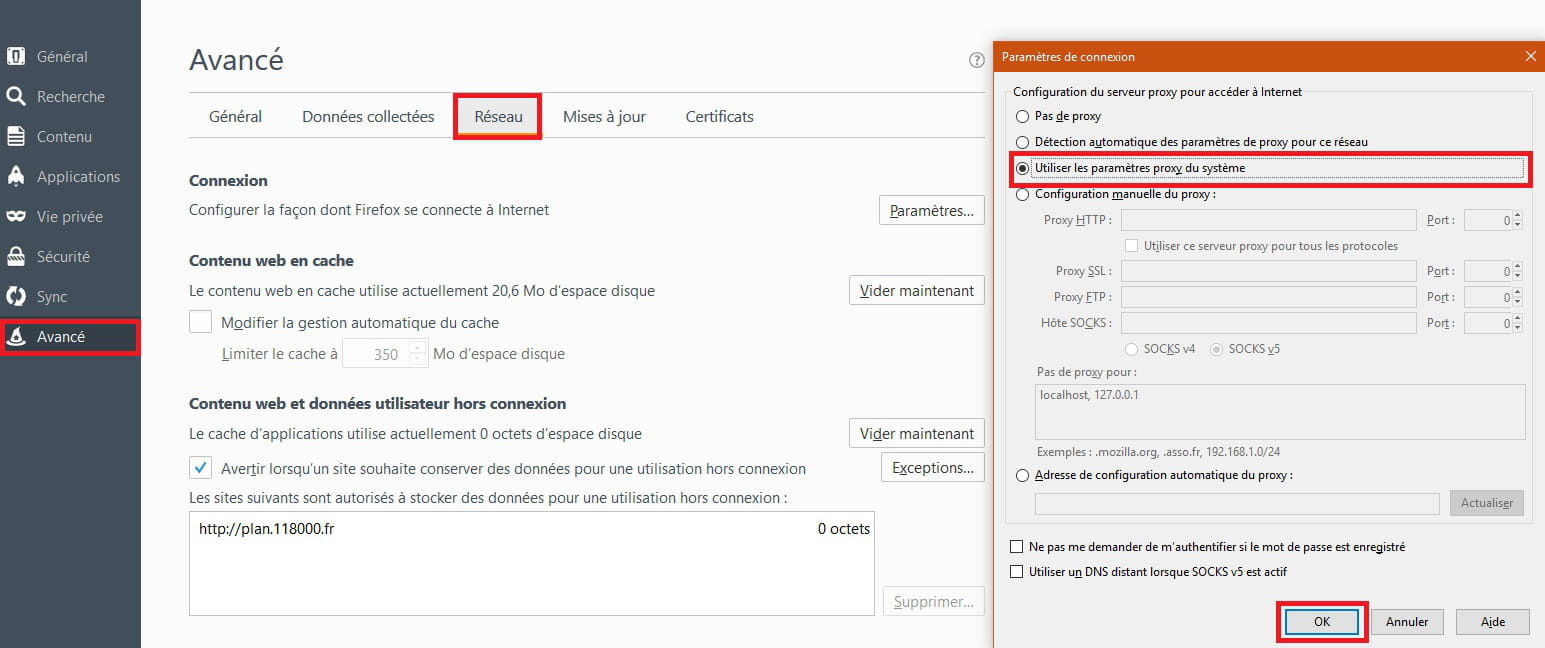 Ouvre ensuite Outils --> Options --> Onglet avancé --> réseau