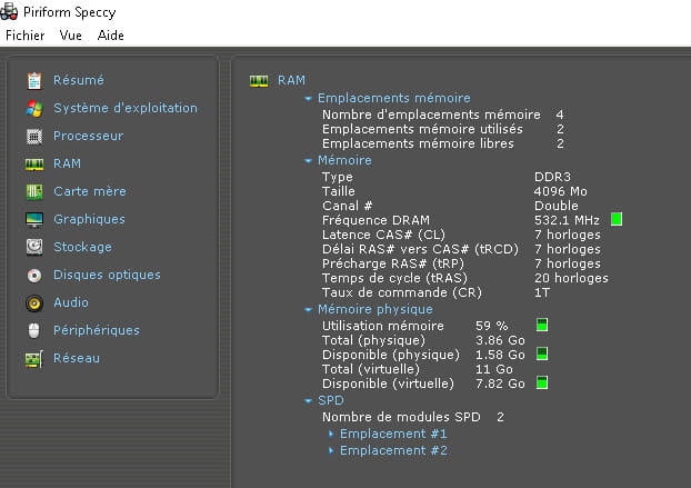 Après avoir analysé mon pc avec le logiciel Speccy et RamExpert, j'ai vu que j'avais deux slots de libres. J'ai plusieurs questions à ce sujet : puis-je ajouter, dans ces deux slots, deux barrettes de RAM de 2go (des SO-DIMM PC3-10600 m'indique le logiciel) sans que cela ne cause un quelconque problème ? Par problème, j'entends : l'ajout de ram, de 4 go à 8 go, ne peut-il pas poser un problème avec la carte mère ou le processeur ? (La question est peut-être idiote mais je ne m'y connais pas beaucoup.) Et où se trouvent ces fameux slots ? (J'ai localisé les deux barrettes de RAM déjà installées mais je ne vois à cet endroit aucun emplacement de libre.)