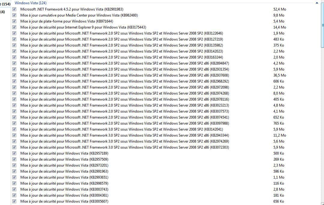 Je dois avouer que cela fait plusieurs années que je n'ai téléchargé aucune MAJ de Vista, me disant "Don't fix what's not broken" (alors que je n'y connais pas grand-chose en informatique). Mais depuis quelques mois mon ordinateur portable se met à ramer et je me demande si je n'aurais pas dû en faire quelques unes. Je crains juste, peut-être par superstition, qu'elles ne viennent empirer les choses (pour m'inciter à upgrader ma version par exemple, ce que je ne veux pas du tout faire).