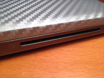 L'ordinateur dispose d'un port longiligne en façade de dimensions proche d'un PCMIA, mais pas assez épais (environ 55 x 1,5 mm) - voir photo en PJ-