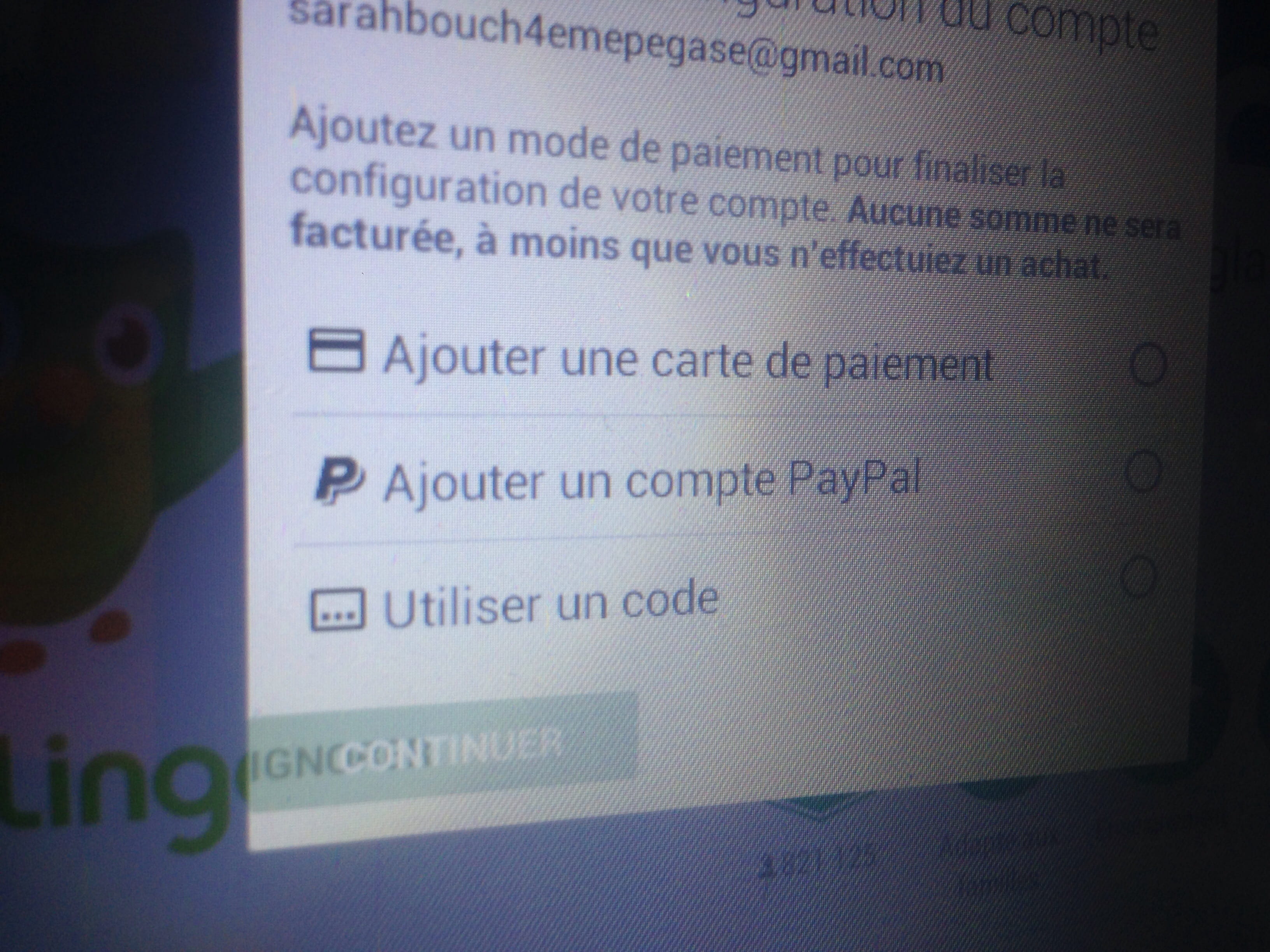 Il faut que je choisisse un paiement , sinon ça ne marche pas