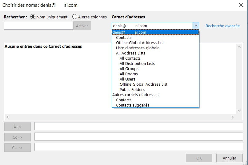 Mais je n'ai pas l'onglet carnet d'adresse outlook sur outlook 2016