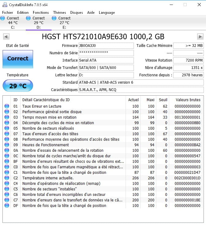 Prête attention aux valeurs brutes annoncées par le S.M.A.R.T. et poste ici une capture d'écran du résultat, stp :) (avant de la publier assure-toi qu'elle ne contient pas de données personnelles tel que le numéro de série du DD).