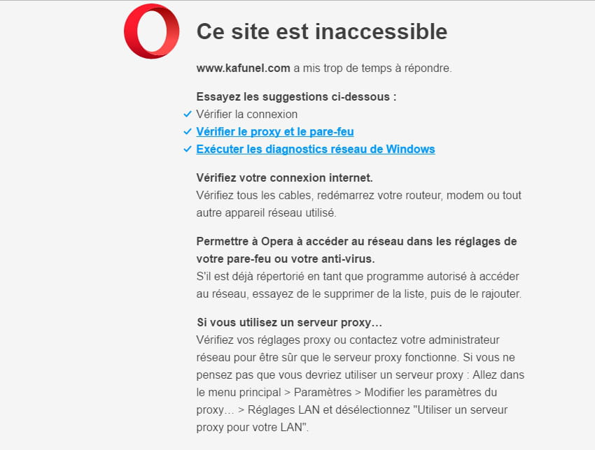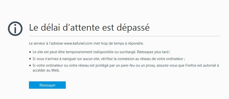 Le serveur à l’adresse www.kafunel.com met trop de temps à répondre.
