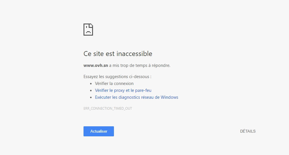 Je n'ai malheureusement pas d'explication, tu peux juste vérifier si ça concerne tous les sites Internet hébergés en France (nom de domaine en .fr), pour voir si le problème vient de OVH Sénégal ou si il est plus général.
