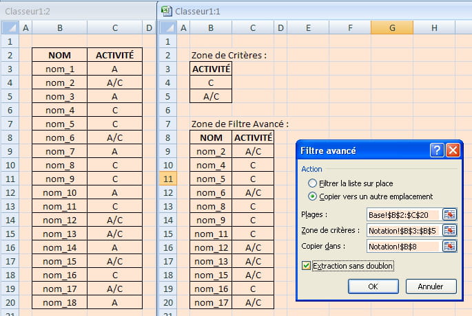 Le problème c'est qu'excel me réécrit tous les noms des personnes en mettant "faux" pour les lignes dont l'activité est "A". Or je ne veux pas que ces lignes apparaissent dans cet onglet.