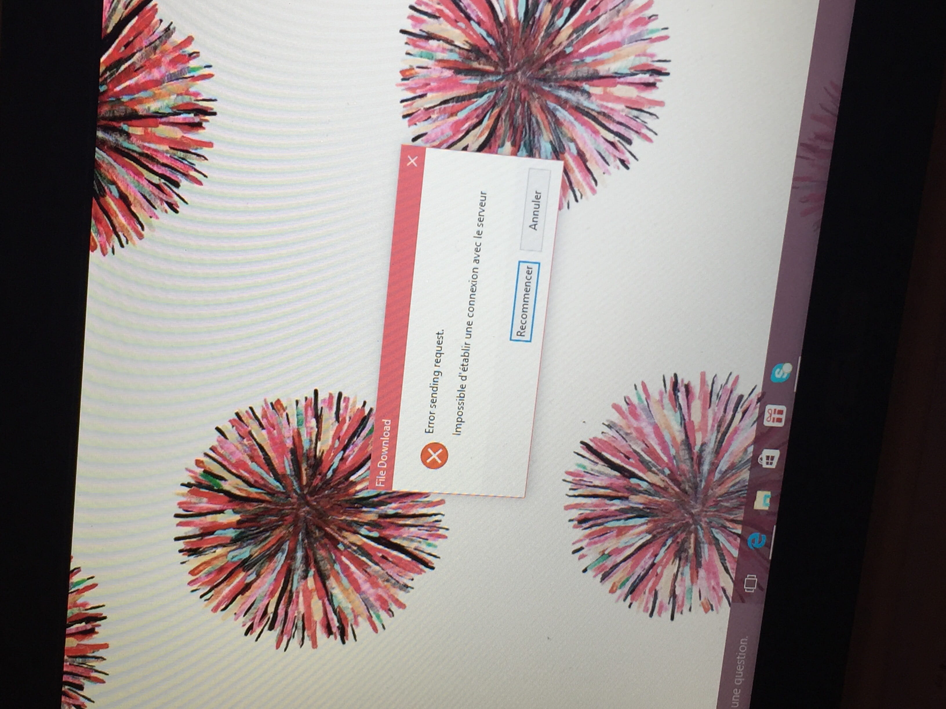 Sur mon bureau, il y a un petit mot disant "File Download, Error sending request. Impossible d'établir une connexion avec le serveur".
