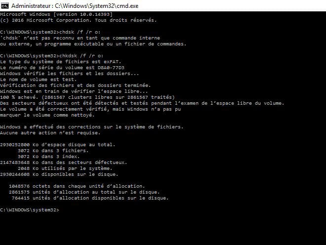 Interpreter Chkdsk pour savoir si disque defecteux ou pas ?