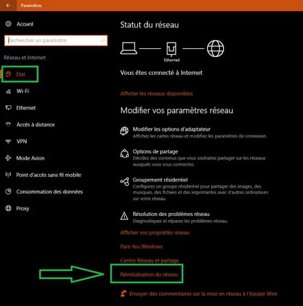 Ensuite après redémarrage vérifies que la carte réseau soit bien activée et que tu soit bien en réseau privé