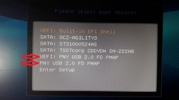 C'est pour ça que tu as deux choix pour lancer ta clé usb ,pour que cela fonctionne il faut la lancer en UEFI .