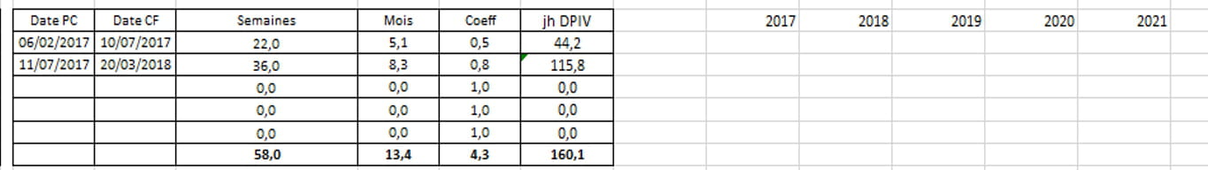 on devrait pouvoir remplir le tableau à droite année par année, mais il faudrait savoir comment son calculés les h/J pour arriver au résultat en F