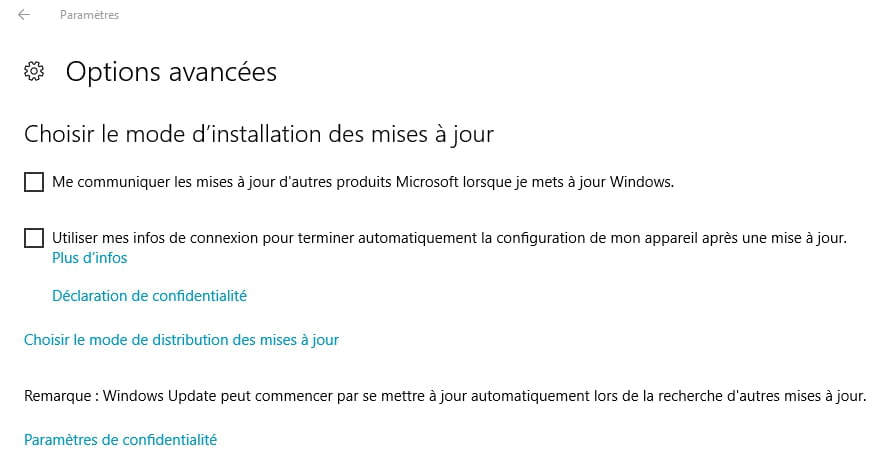Et dans options avancées j'ai décoché me communiquer les mises à jour d'autres produits Microsoft lorsque je mets à jour Windows.