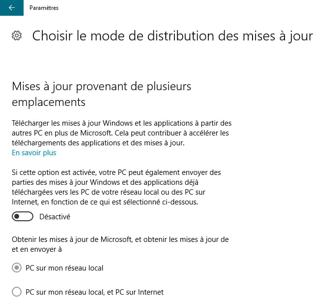 Désactiver les mise à jour provenant de plusieurs emplacements.