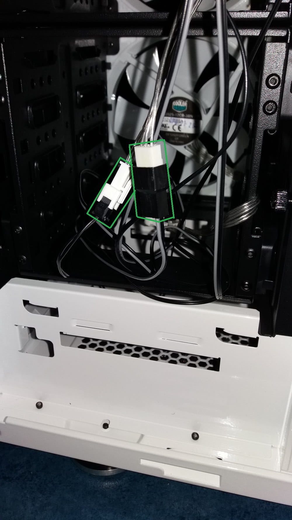 A : Les câbles derrière le boîtier, qui relie les ventilateurs au dessus du boîtier.