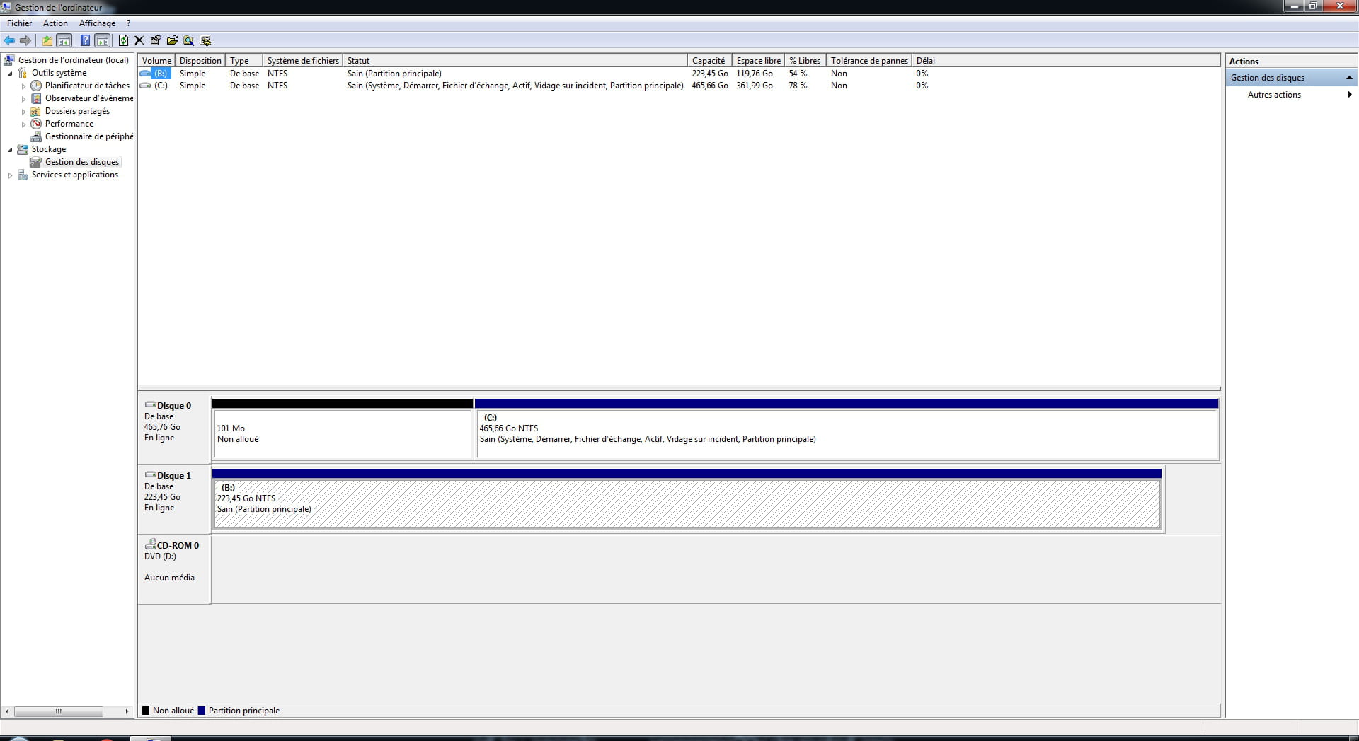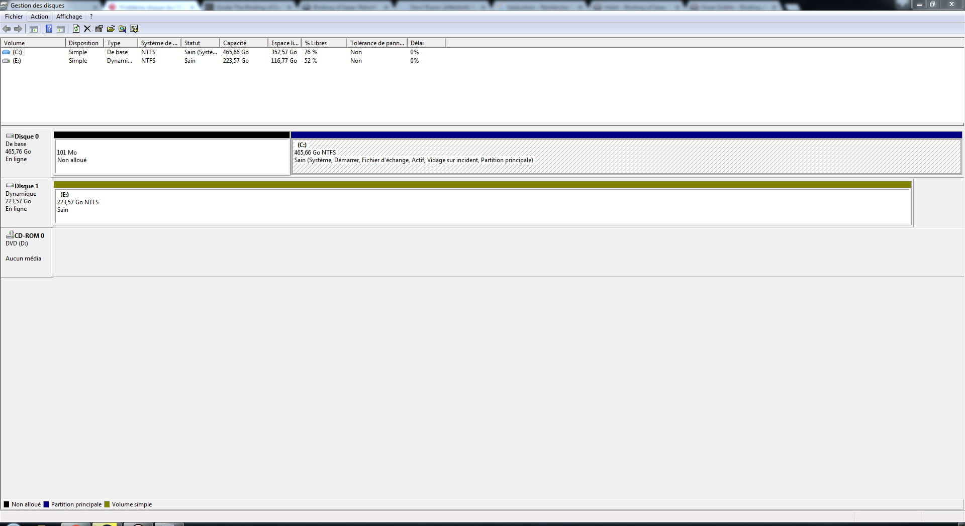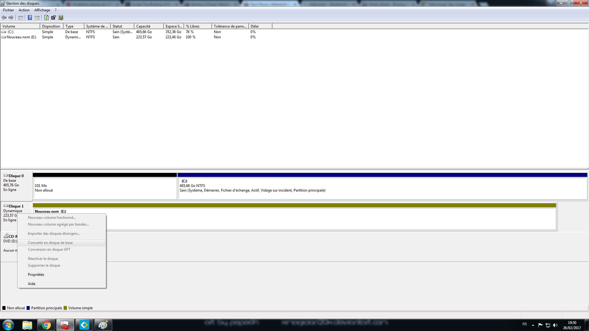 - J'ai allumé mon ordinateur, j'ai remarqué que mon disque dur était reconnu mais pas affiché dans l'ordinateur. J'ai donc fais clic droit sur ordinateur>Gérer>Gestion des disque puis j'ai fractionné et transformé en disque de base.