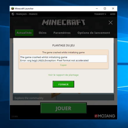 - Démarrage de Minecraft impossible plantage du jeux