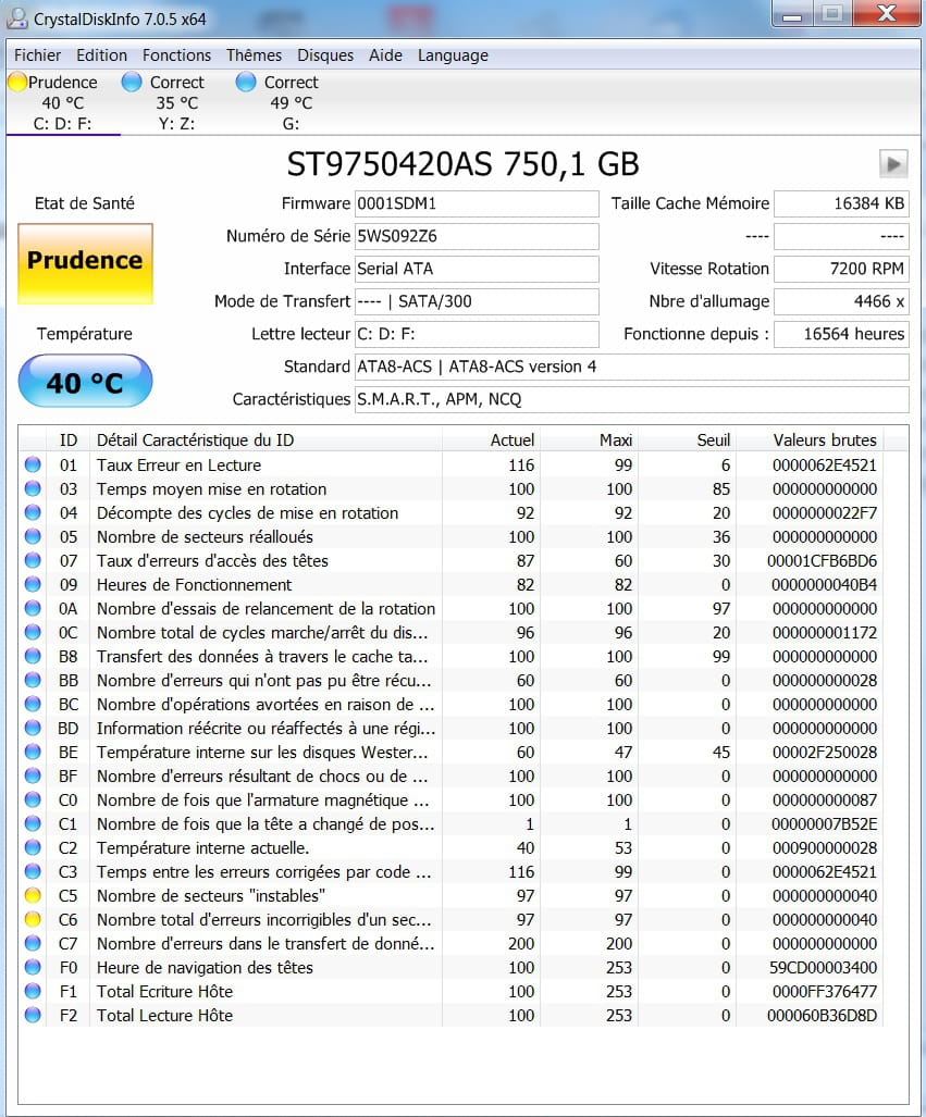 Utilises CrystalDiskInfo pour connaitre l'état de santé du disque dur.