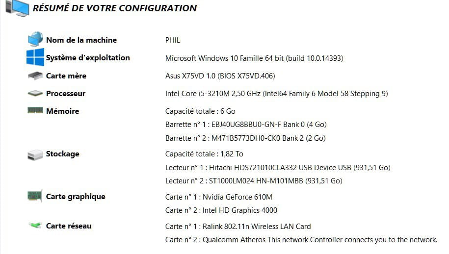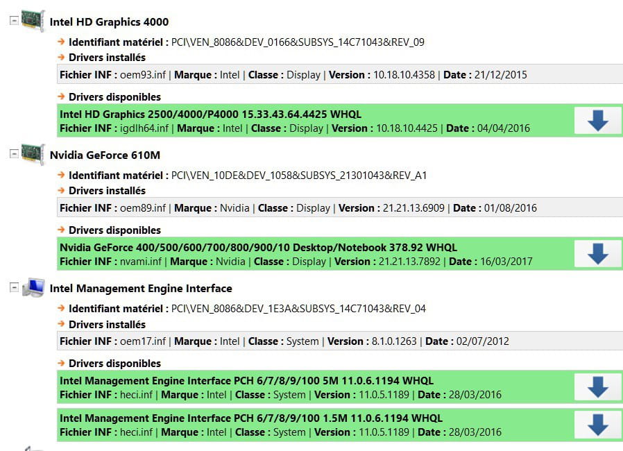 Tu as essayé un scan touslesdrivers.com en ayant ton HDD connecté ? Enfin si la boîte a coulé, t'attends pas à avoir une MaJ récente ^^