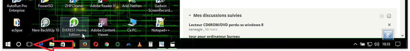 Alors pour vérifier cette théorie, dans la barre de tâche, a coté du logo Windows, il y a celui de cortana, cliquez sur celui après celui de cortana, vous verrez s'afficher tout les bureaux créer, choisissez donc le bon bureau. confère image