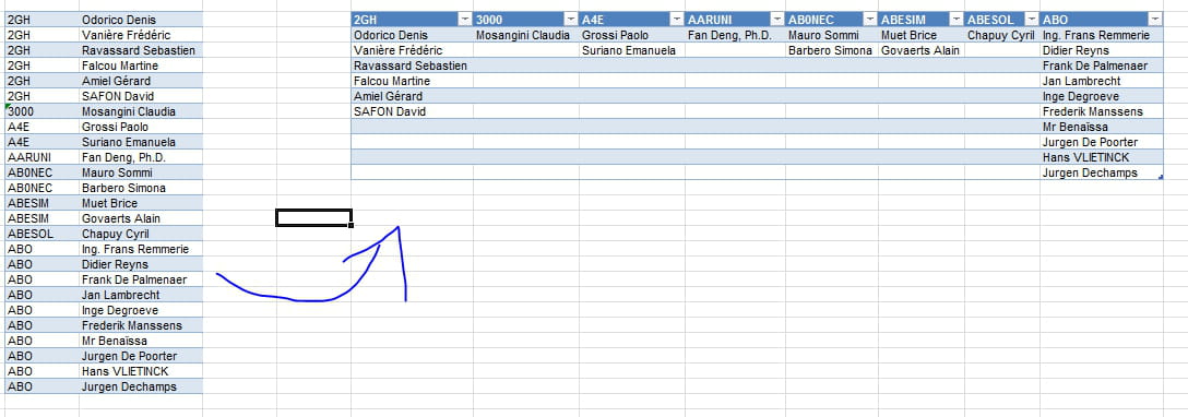1- le tableau à transposer est une table Excel s'appelant : Tableau1 et que ses entêtes soient colonne1 et colonne2