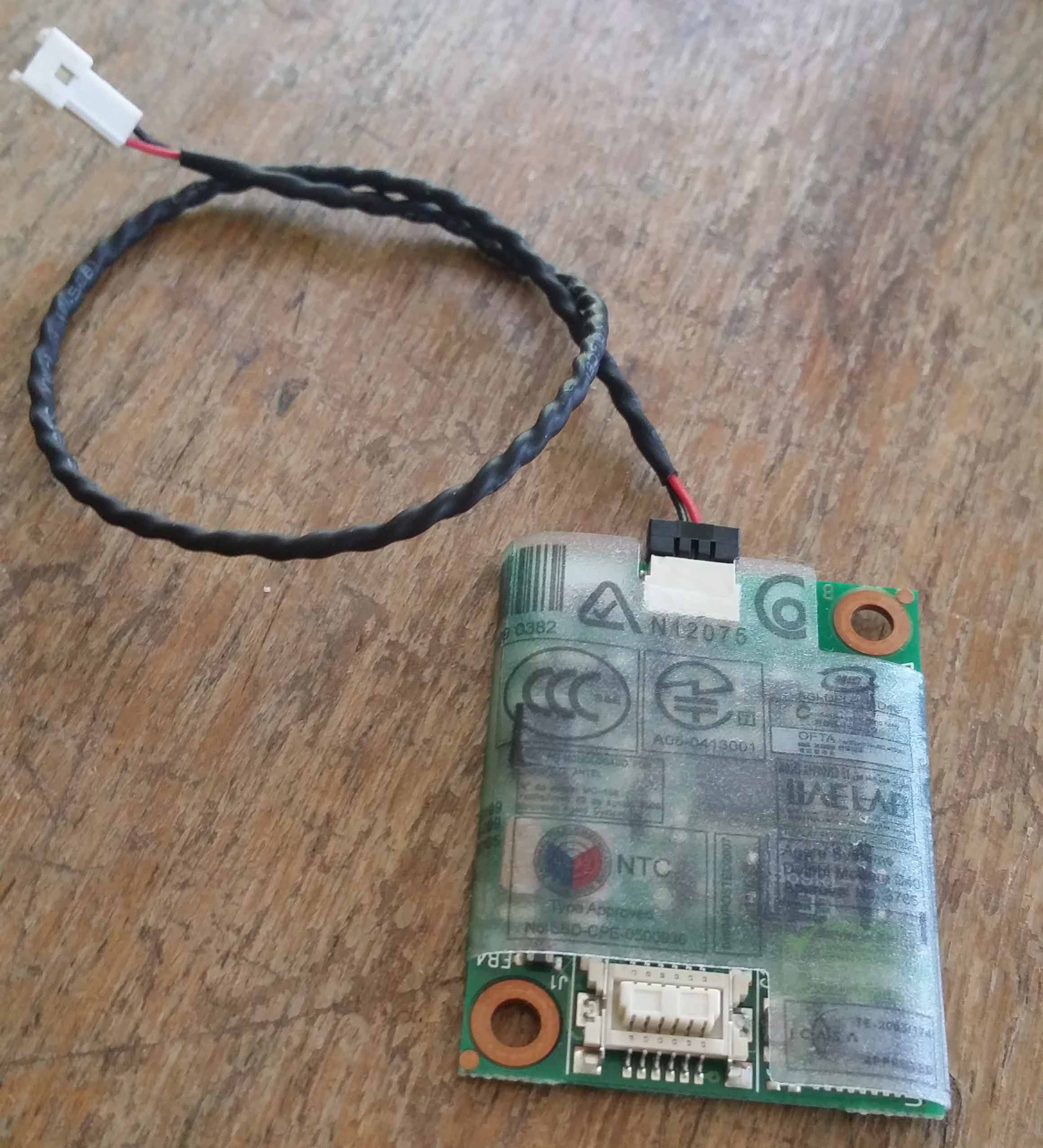 J'ai une petite carte, oui, qui se branche sur une prise genre rallonge d'un côté et apparemment sur un slot de l'autre, à la carte mère j'imagine. J'en ai déduit que c'était la carte son car d'une part impossible d'installer un pilote, d'autre part j'ai un message qui me dit qu'il n'y a pas d'audio. Je te mets la photo :