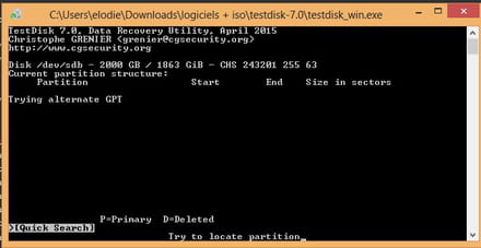 j'ai allumé testdisk et voici l'imprim ecran de l'analyse.