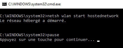 car cela m'a ouvert une fenêtre "Taskeng.exe" avec la bonne commande mais je n'ai pas eu le message "Le réseau hébergé a été démarré" que j'ai quand je le fais avec l'invite de commande. Et le réseau n'a pas démarré comme si la commande n'avait pas été validé.