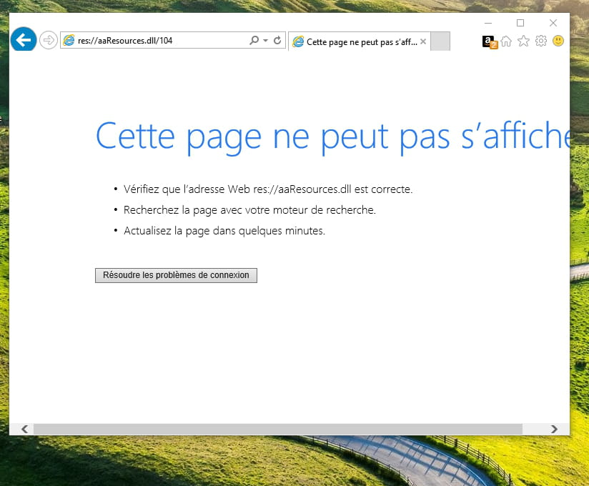 une page revient sans raison sur l'écran avec l'inscription "cette page ne peut pas s'afficher"