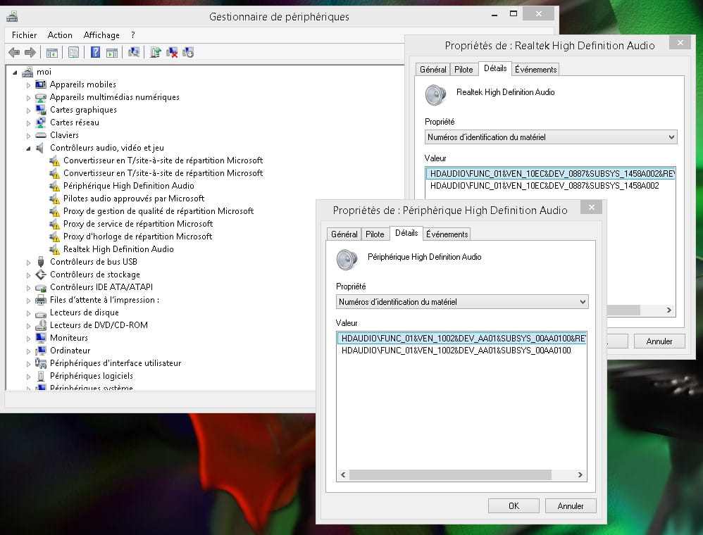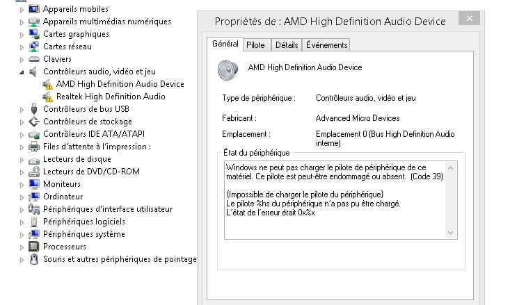 Fais clic droit sur --> Périphérique High Definition Audio ou AMD High Definition Audio