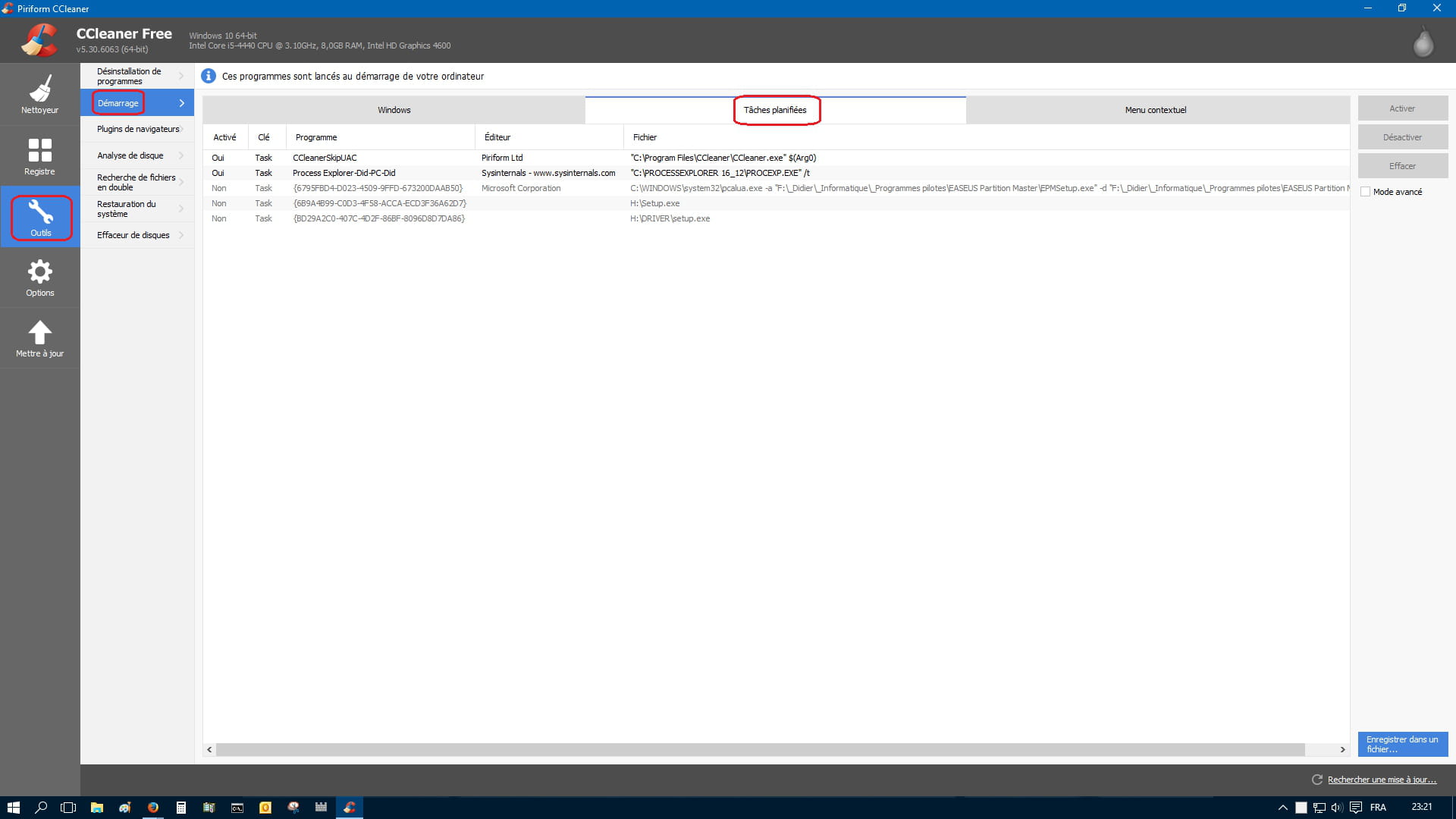 Je désinstalle quelques applications inutiles, j'installe Ccleaner et ZHPDIAG...