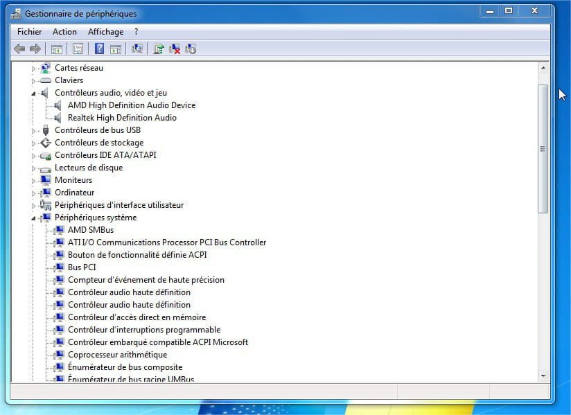 Je n'ai dans le gestionnaire des périphériques rien d'anormal