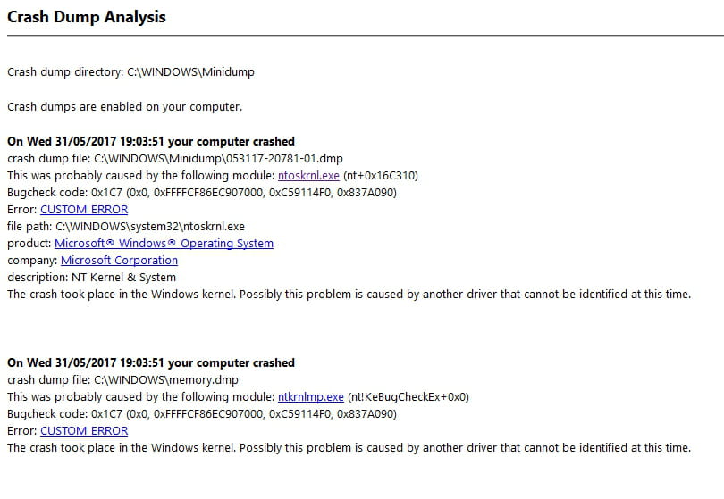 j'ai regardé le rapport de crash avec WhoCrashed et il semble que le problème vient du fichier ntoskrnl.exe quand je clique sur le fichier il y a écrit ne peut être exécuté en mode Win32