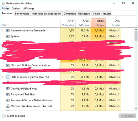 Il faudrait que antimalwares service executable , system , hote de services ,indexeur microsoft window search etc ... ( tout ce qui est dans le screen ) ne prenne plus d'utilisation du disque , de la mémoire et du processeur ( car il arrive des fois que ces services prennent beaucoup d'utilisation aussi sur le processeur et sur la mémoire ) car cela devient de plus en plus génant