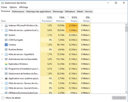 Deja fait, absolument rien dans le gestionnaire de tache prend plus de 500mo de ram, je suis tres loin de remplir ma ram a + de 90% et pour le DD, il ete utilisé a 100% par le fait que ce qui dois aller dans la ram a la base, finit dans le dd pour eviter la saturation