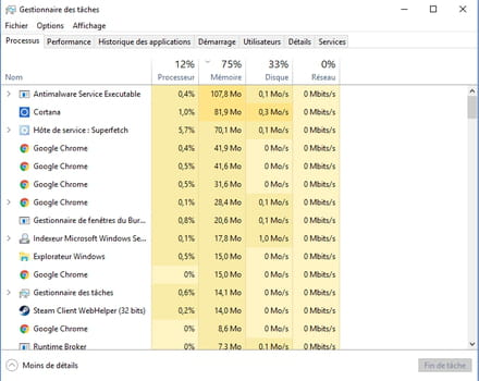 il n'y a aucun processus qui bouffe énormément de ram.
