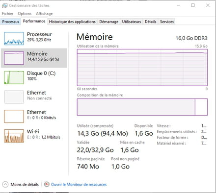 Je précise que quand je démarre mon pc j'utilise 15% de la RAM une fois tous les logiciels de démarrage lancé, et après même si je part faire quelque chose, quand je vais revenir la RAM sera par exemple a 40% au bout de 3H.